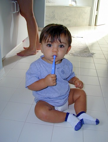 Click on image to view full size July 16th - Nico is now standing unassisted but is reluctant to take his first steps. We can tell that it won't be long though.
