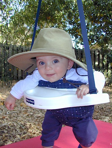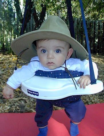 Trying on daddy's jungle hat