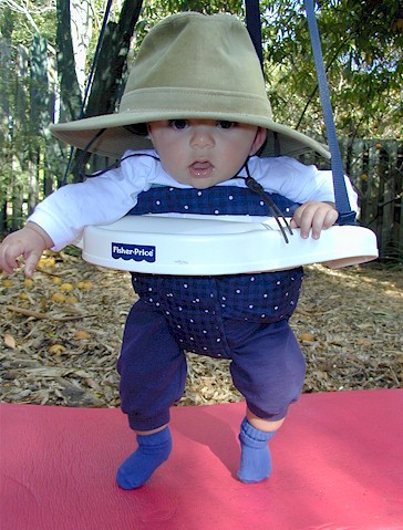 him from door frames or tree limbs and he'll jump, turn and swing for as long as
